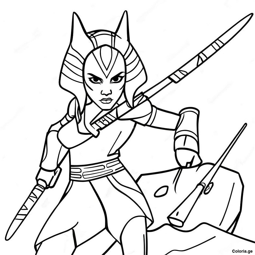 Ahsoka Tano Avec Un Padawan Page A Colorier