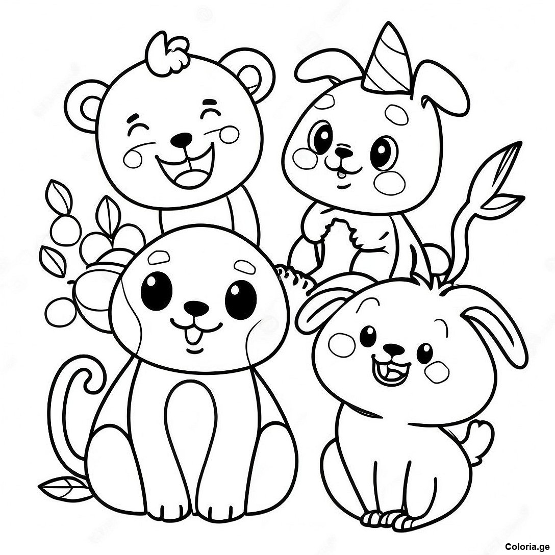 Télécharger le PDF imprimable de Animaux Joyeux Page De Coloriage