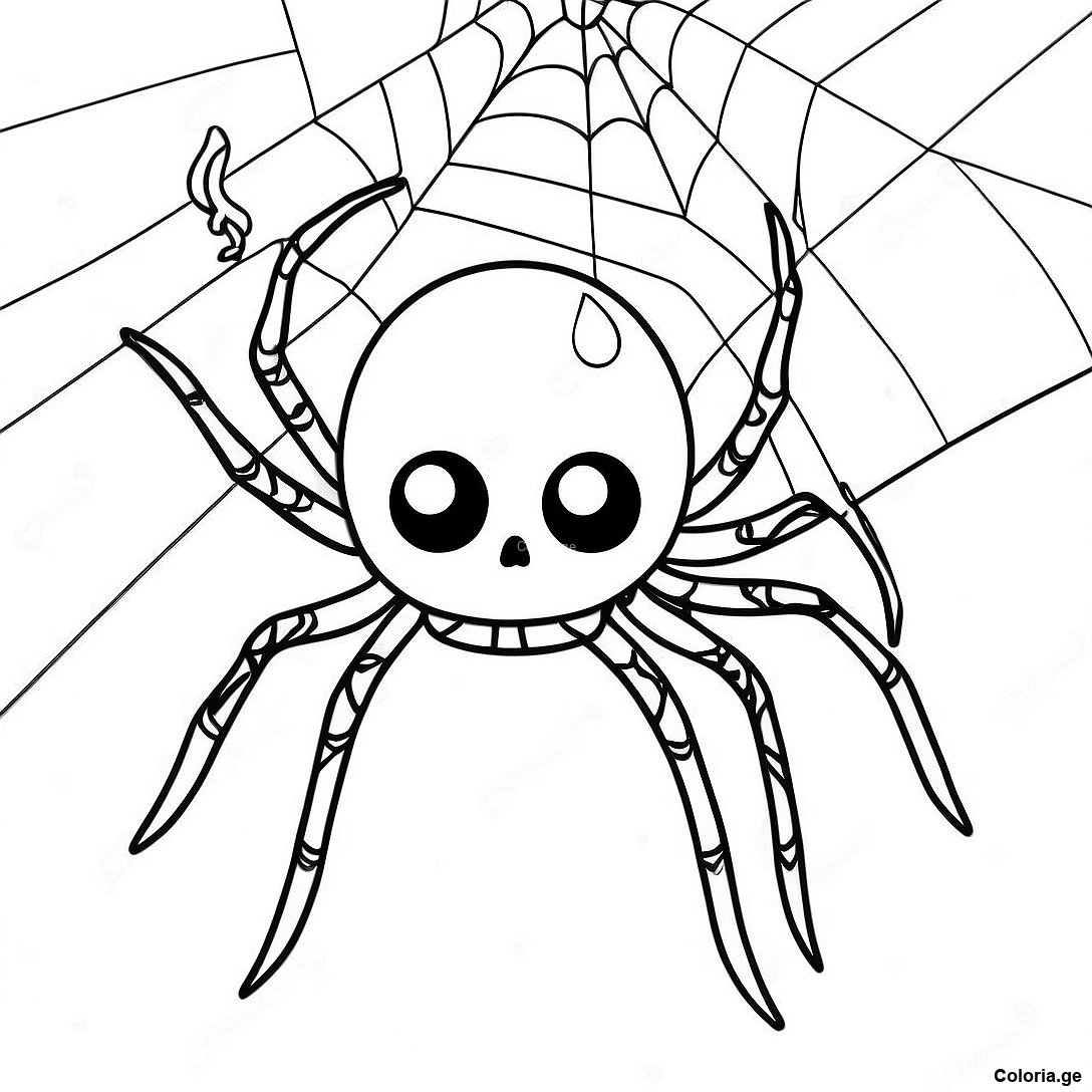 Araignée Effrayante Dans Une Toile Page À Colorier