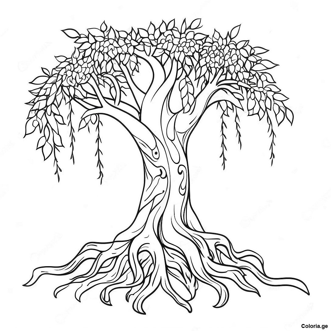 Arbre Saule Fantastique Page À Colorier