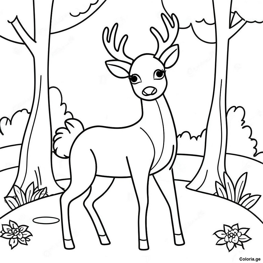 Cerf Gracieux Dans La Forêt - Page De Coloriage