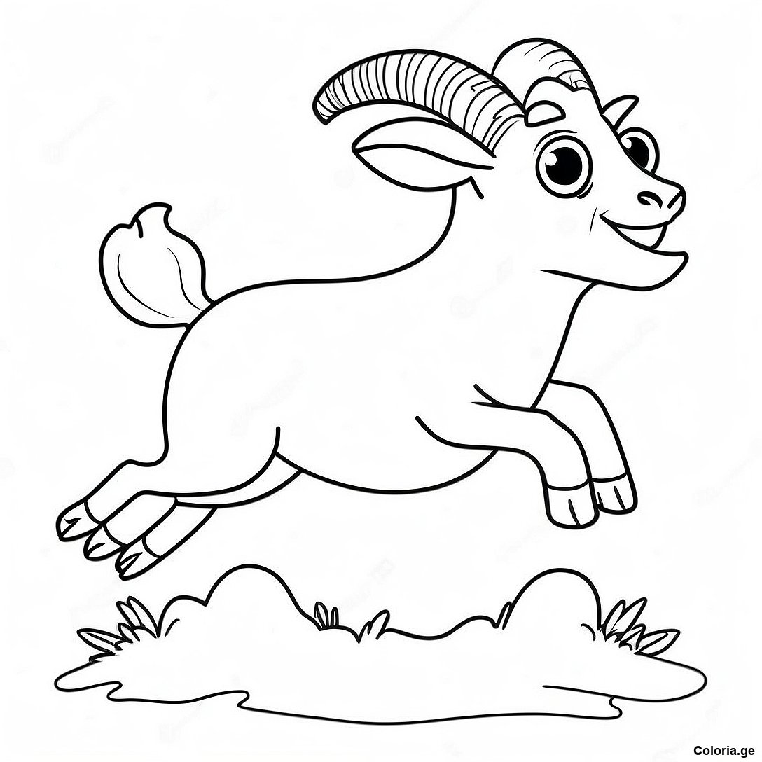 Chèvre Drôle Sautant Sur Une Page À Colorier