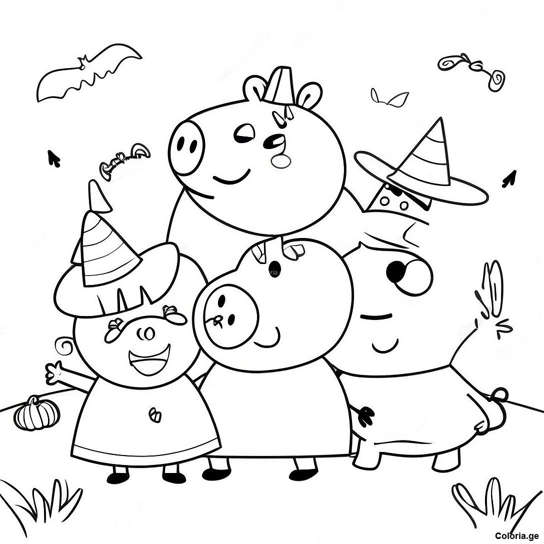 Dessin À Colorier De Peppa Pig Et Ses Amis À La Fête D'halloween