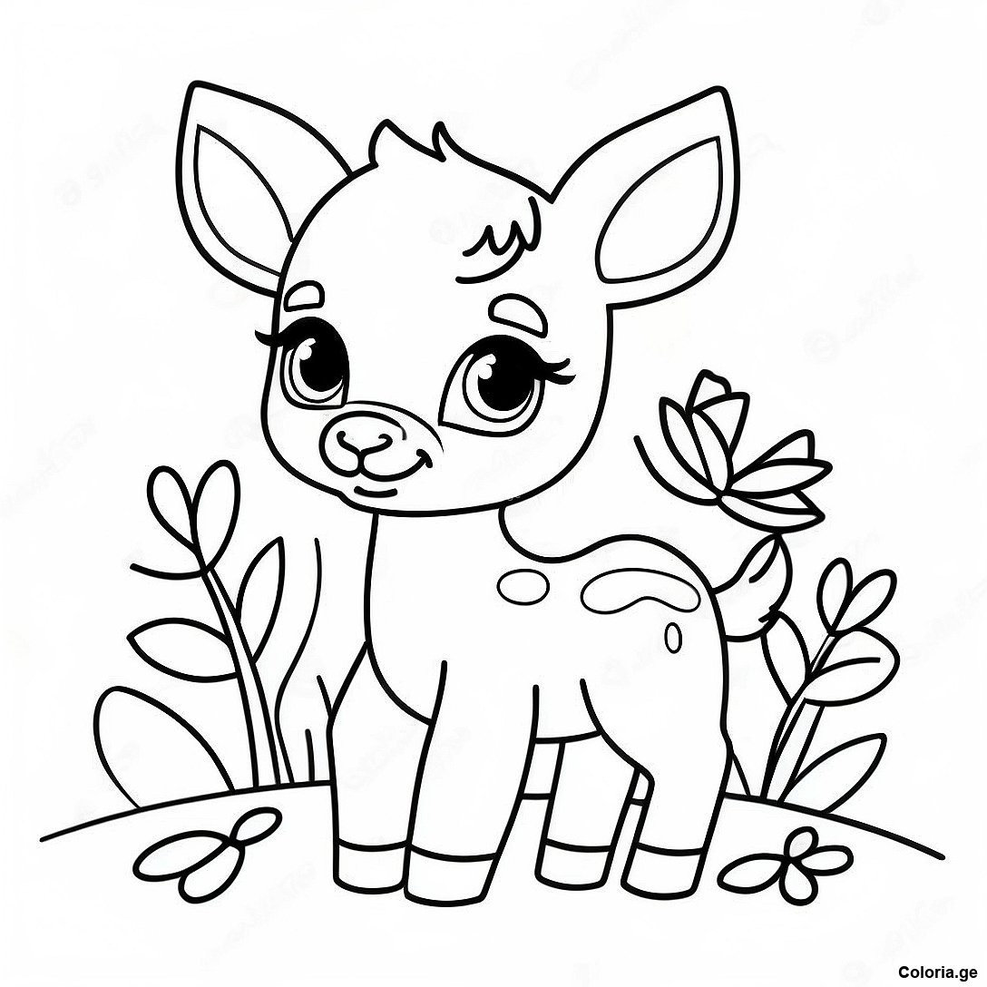 Télécharger le PDF imprimable de Faon Joueur Avec Des Fleurs Page De Coloriage