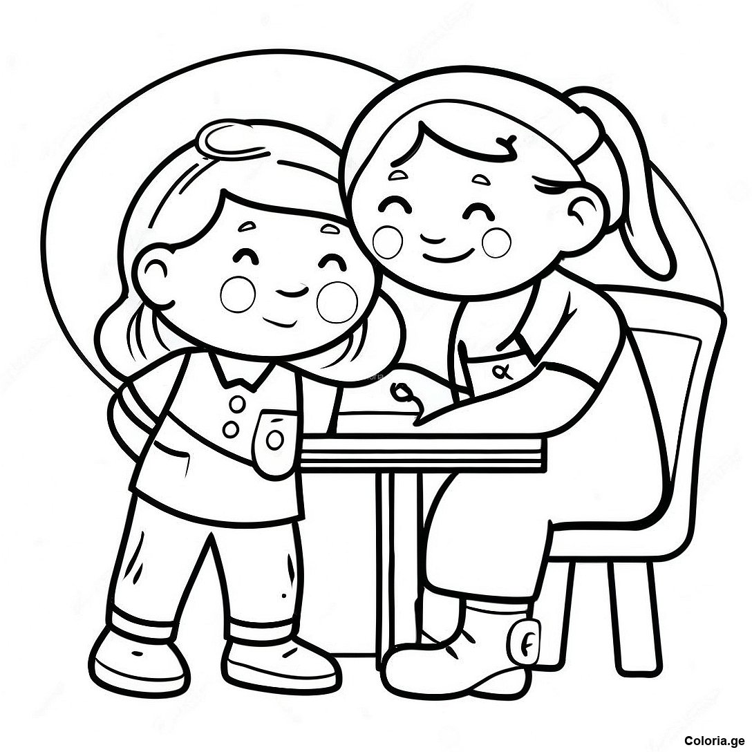 Télécharger le PDF imprimable de Infirmière Amicale Aidant Un Enfant - Page De Coloriage