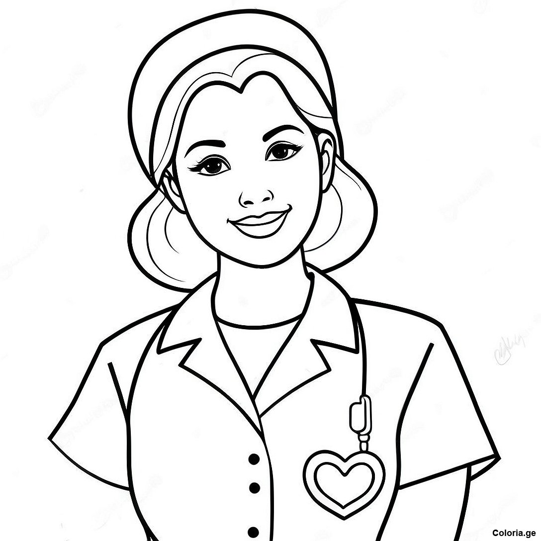 Infirmière En Blouse Avec Un Cœur - Page De Coloriage