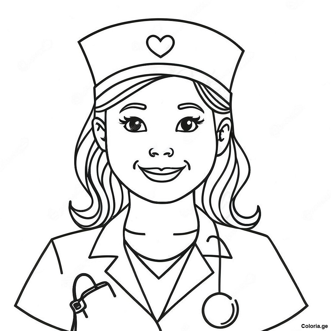 Télécharger le PDF imprimable de Infirmière En Blouse Avec Un Cœur - Page De Coloriage