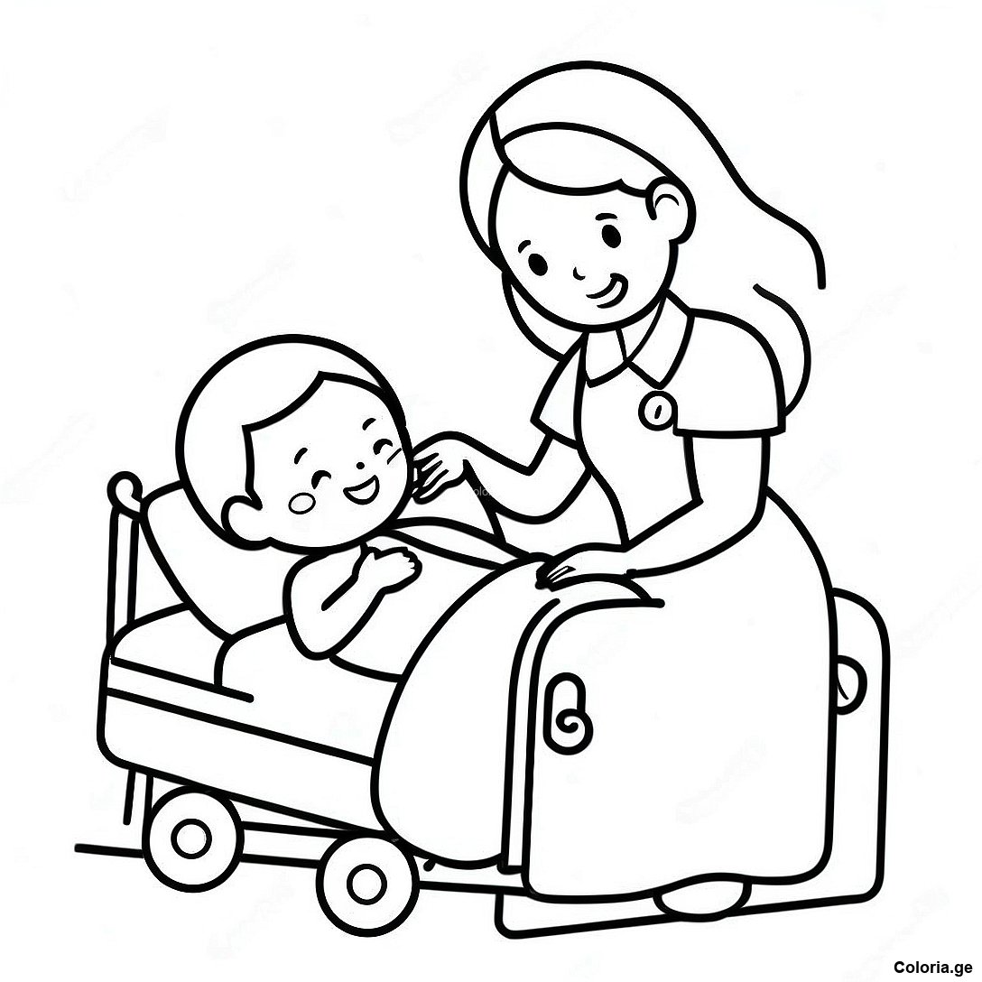 Télécharger le PDF imprimable de Infirmière Mignonne Aidant Un Patient - Page De Coloriage
