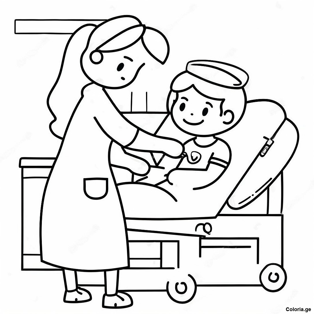 Télécharger le PDF imprimable de Infirmière Mignonne Aidant Un Patient - Page De Coloriage