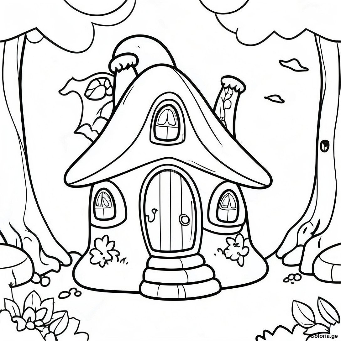 Maison De Fée Fantaisiste Dans La Forêt Page À Colorier