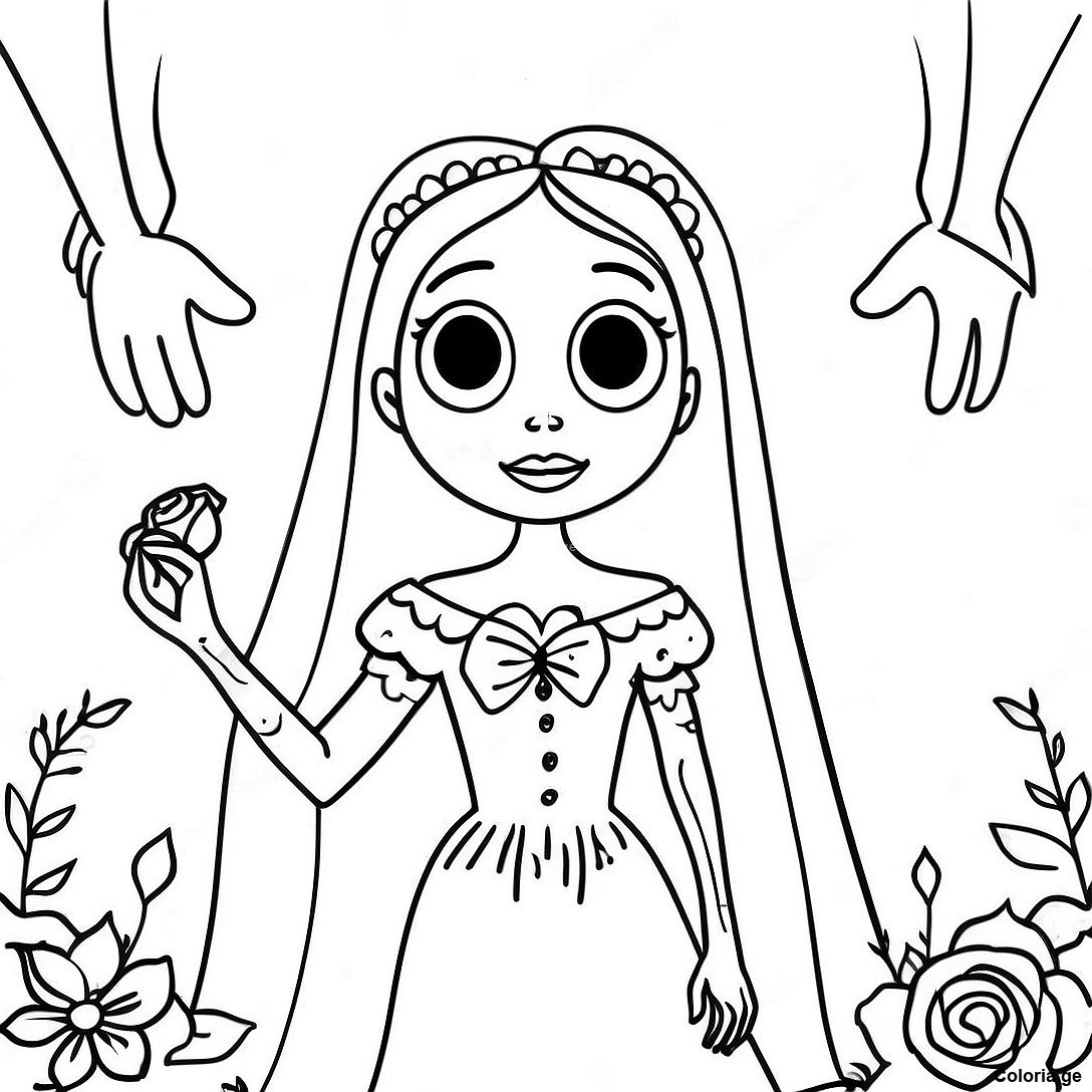 Télécharger le PDF imprimable de Mariée Cadavérique Avec Des Fleurs Page À Colorier
