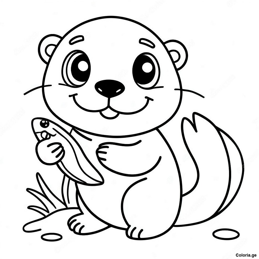 Mignonne Loutre Tenant Un Poisson Page A Colorier