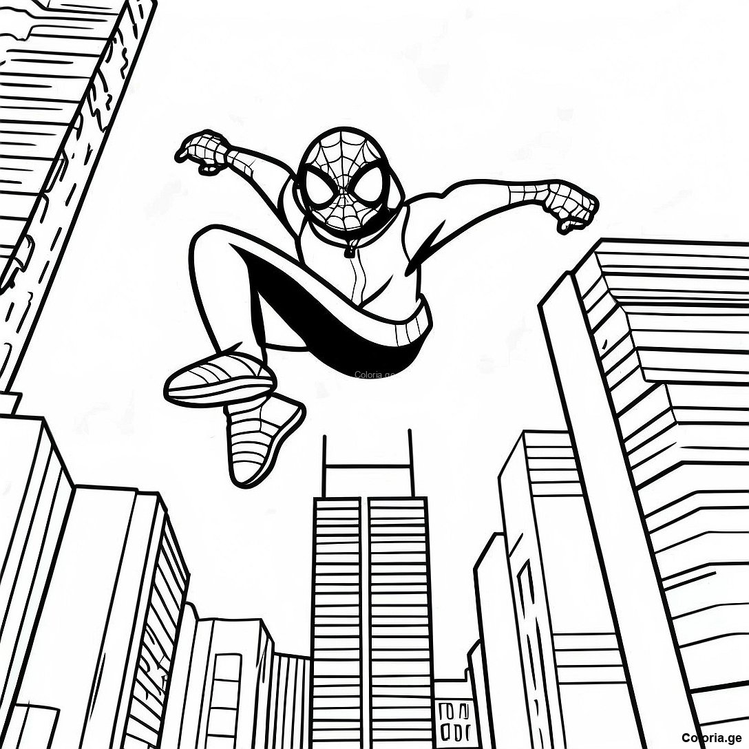 Télécharger le PDF imprimable de Miles Morales Sautant Par-Dessus Des Bâtiments Page À Colorier
