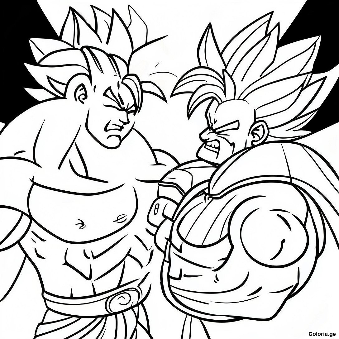 Télécharger le PDF imprimable de Page À Colorier De Broly Contre Goku