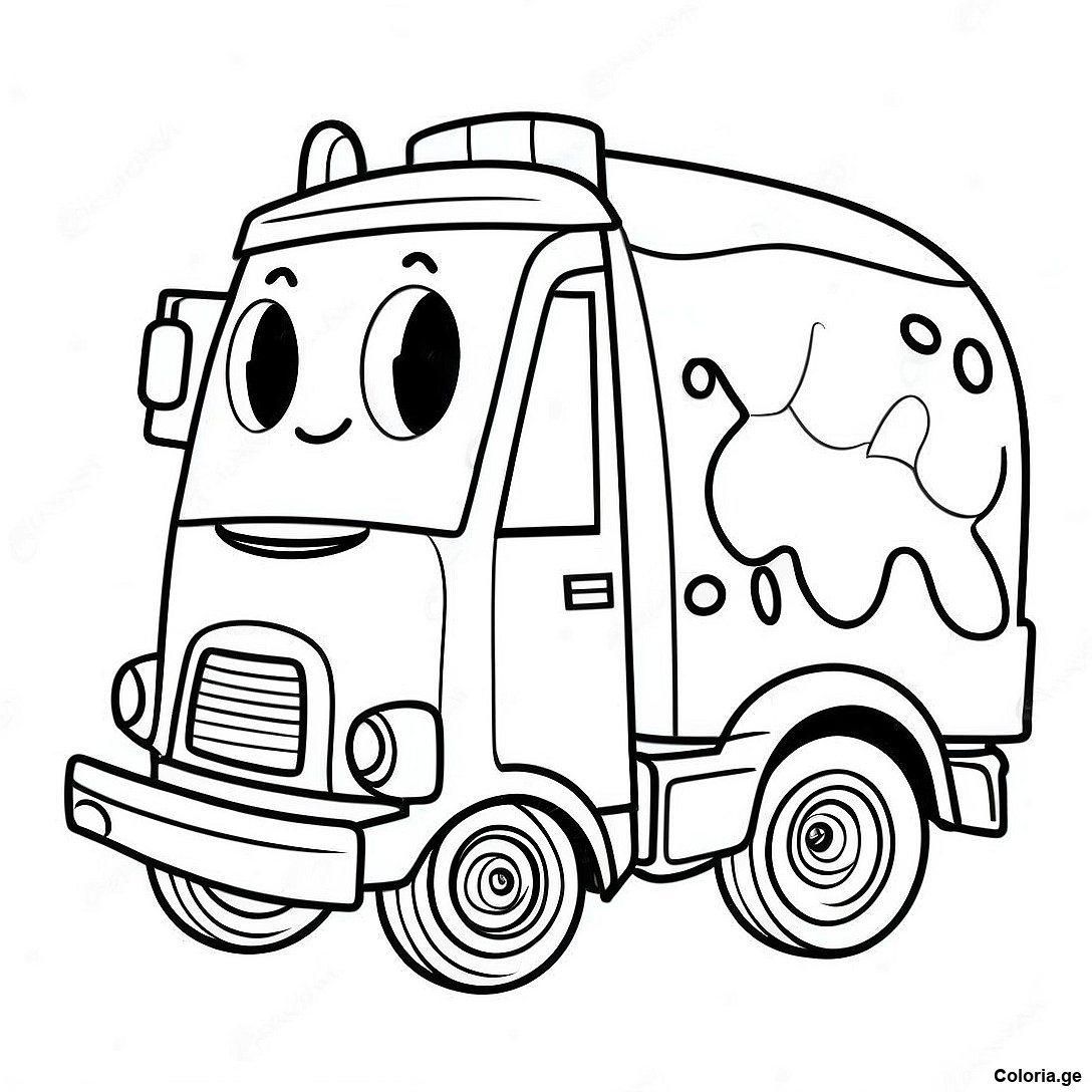 Page À Colorier De Camion Poubelle Mignon En Dessin Animé