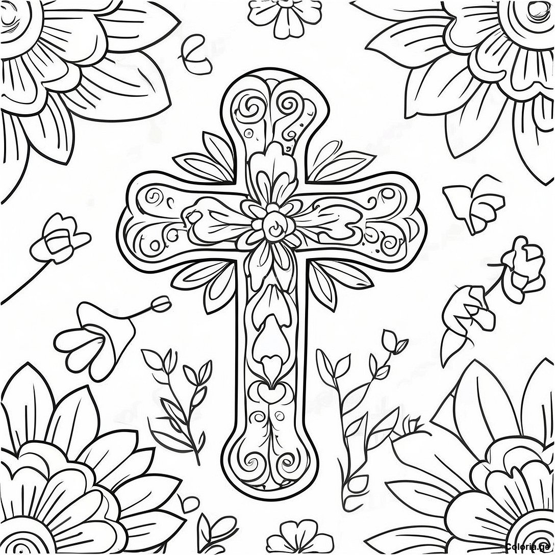 Page À Colorier De Croix Colorée Avec Des Fleurs