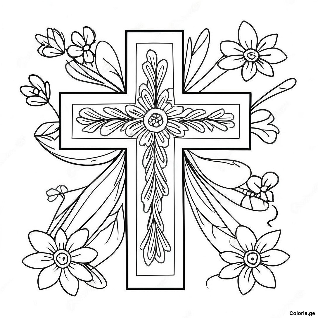 Page À Colorier De Croix Colorée Avec Des Fleurs