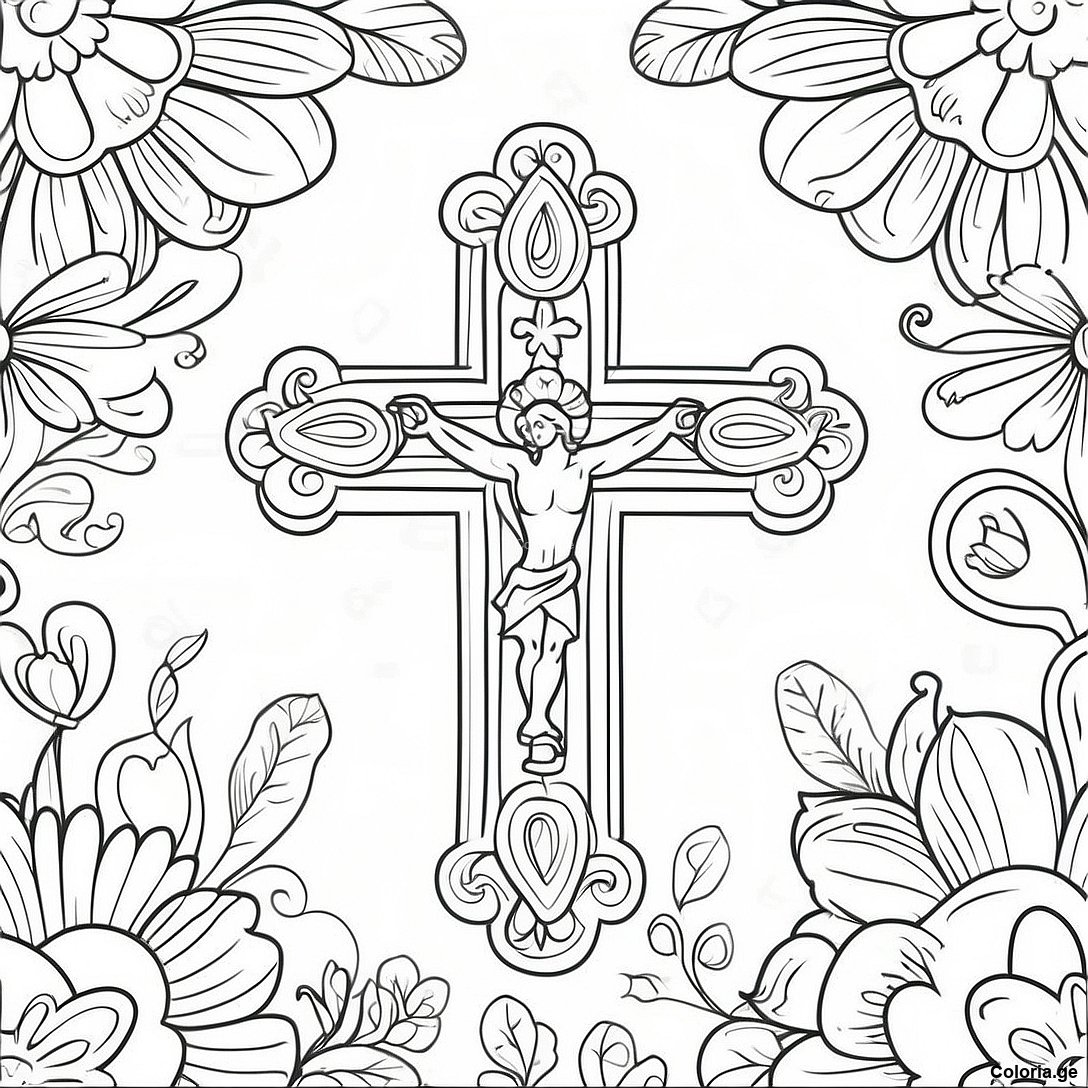 Télécharger le PDF imprimable de Page À Colorier De Croix Colorée Avec Des Fleurs