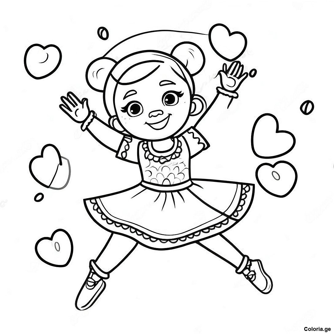 Télécharger le PDF imprimable de Page À Colorier De Fille Noire Heureuse Dansant