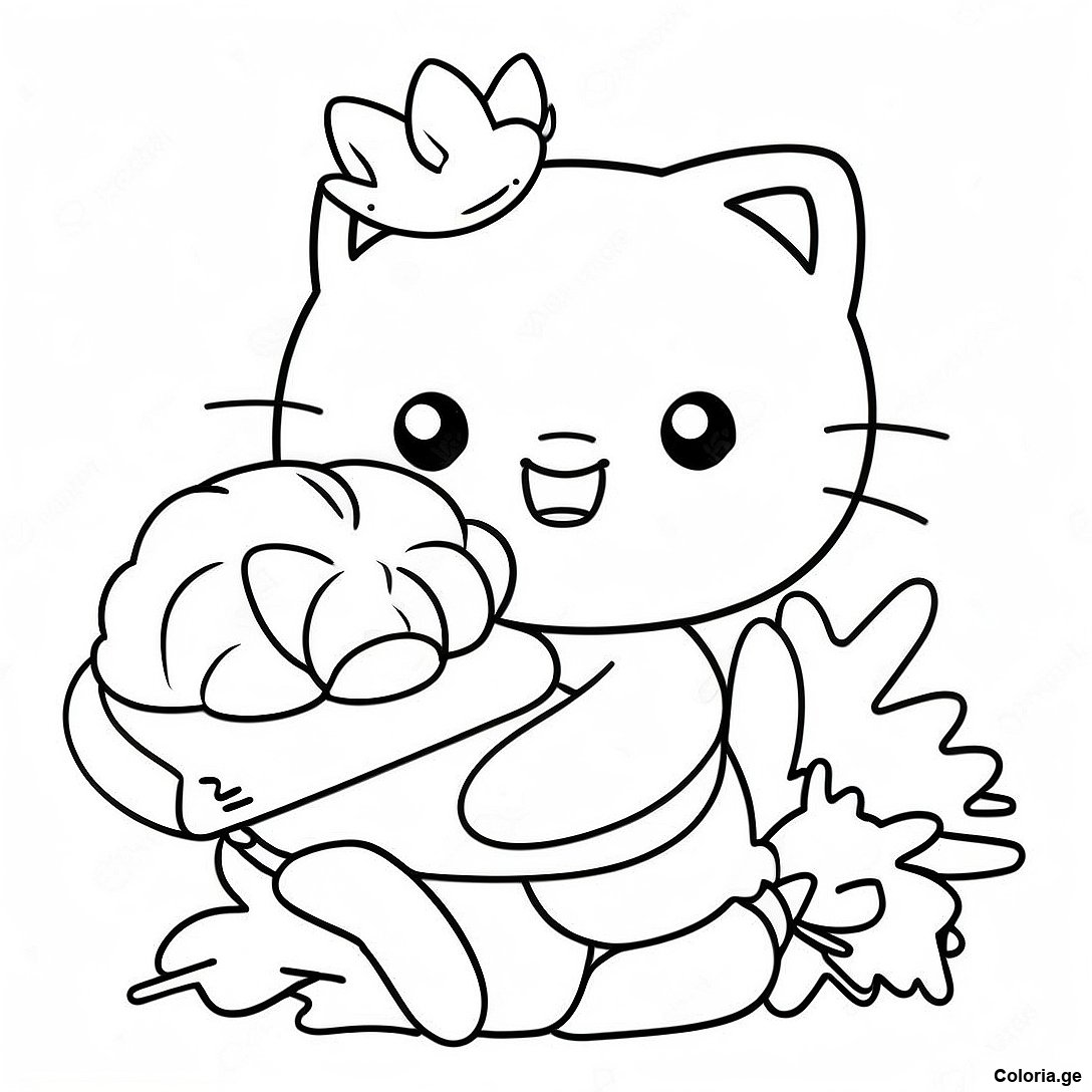 Page À Colorier De Hello Kitty Mignonne Avec Une Dinde