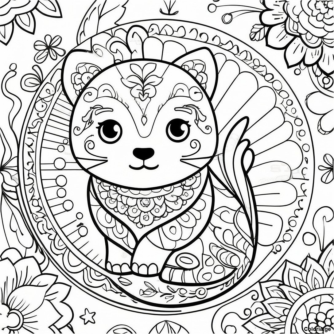 Télécharger le PDF imprimable de Page À Colorier De Mandala D'animaux Mignons
