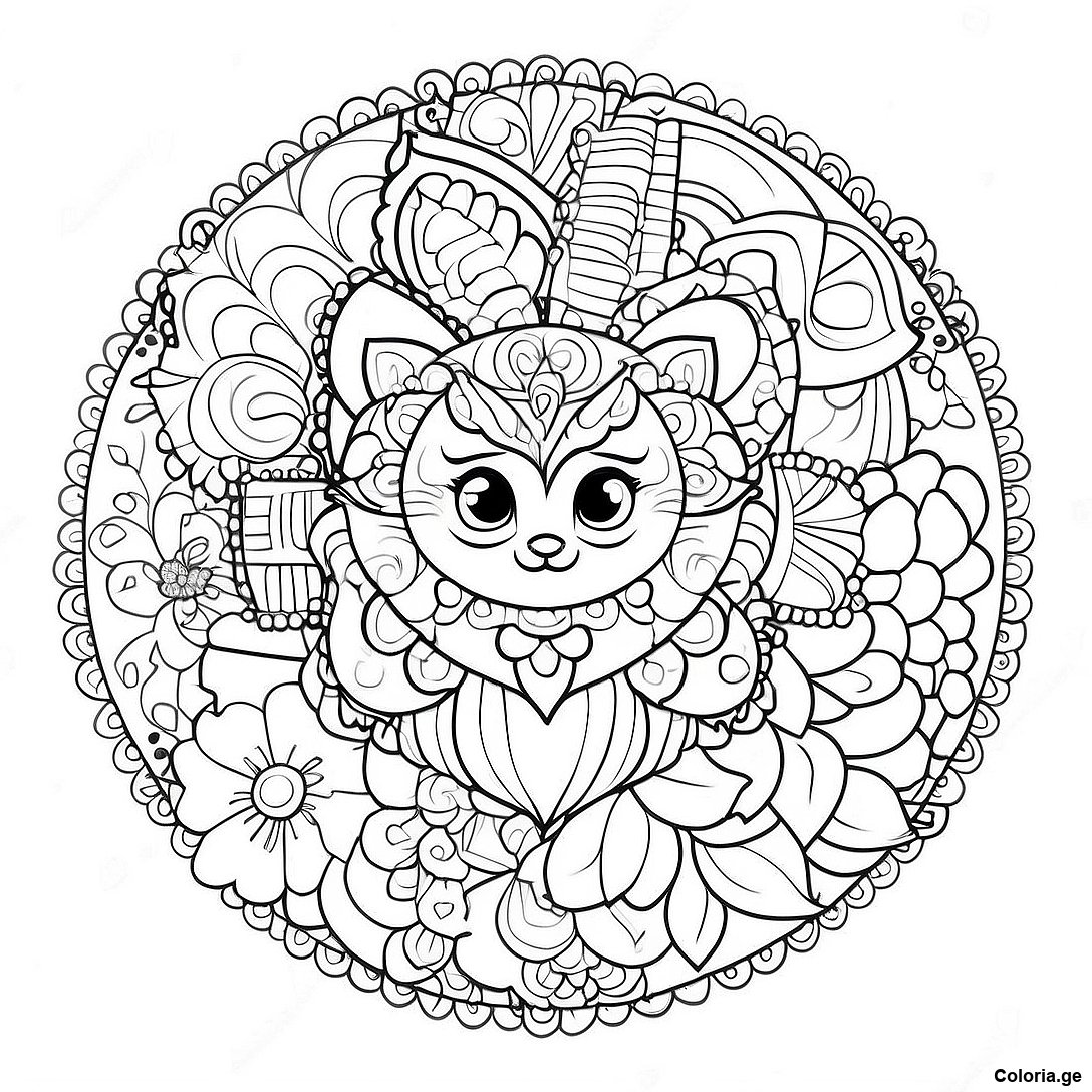 Télécharger le PDF imprimable de Page À Colorier De Mandala D'animaux Mignons