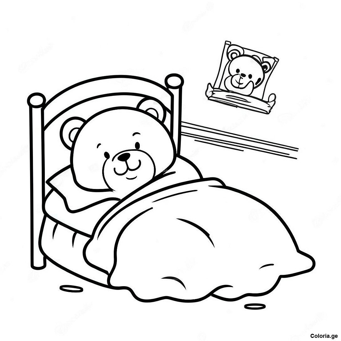 Page À Colorier De Ours En Peluche Endormi Dans Un Lit