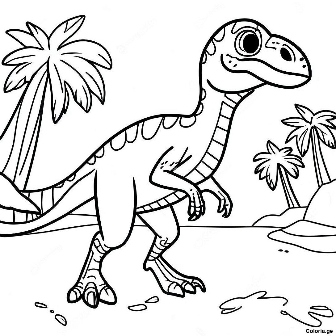 Télécharger le PDF imprimable de Page À Colorier De Vélociraptor Chassant Dans Jurassic Park