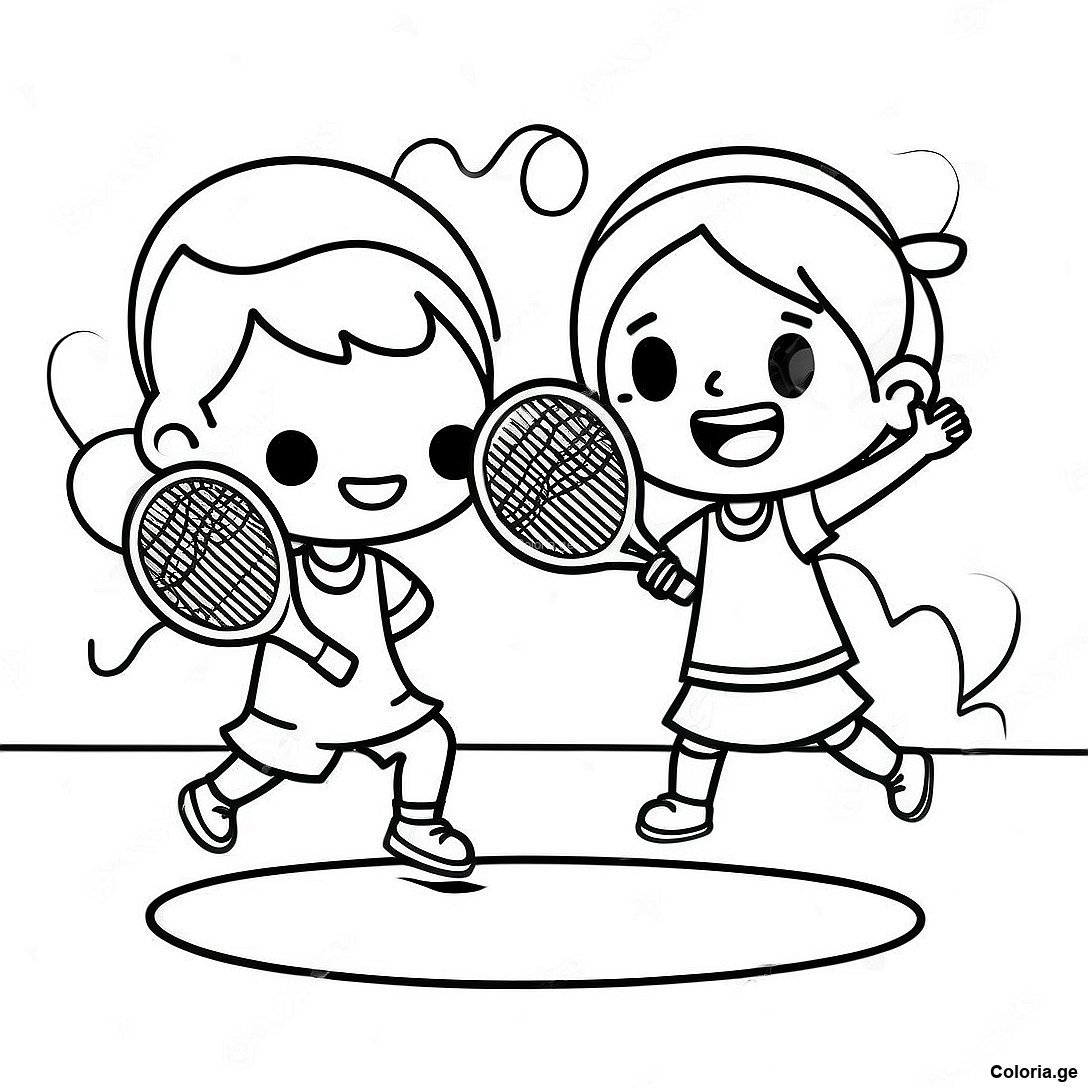 Télécharger le PDF imprimable de Page À Colorier D'enfants Heureux Jouant Au Tennis
