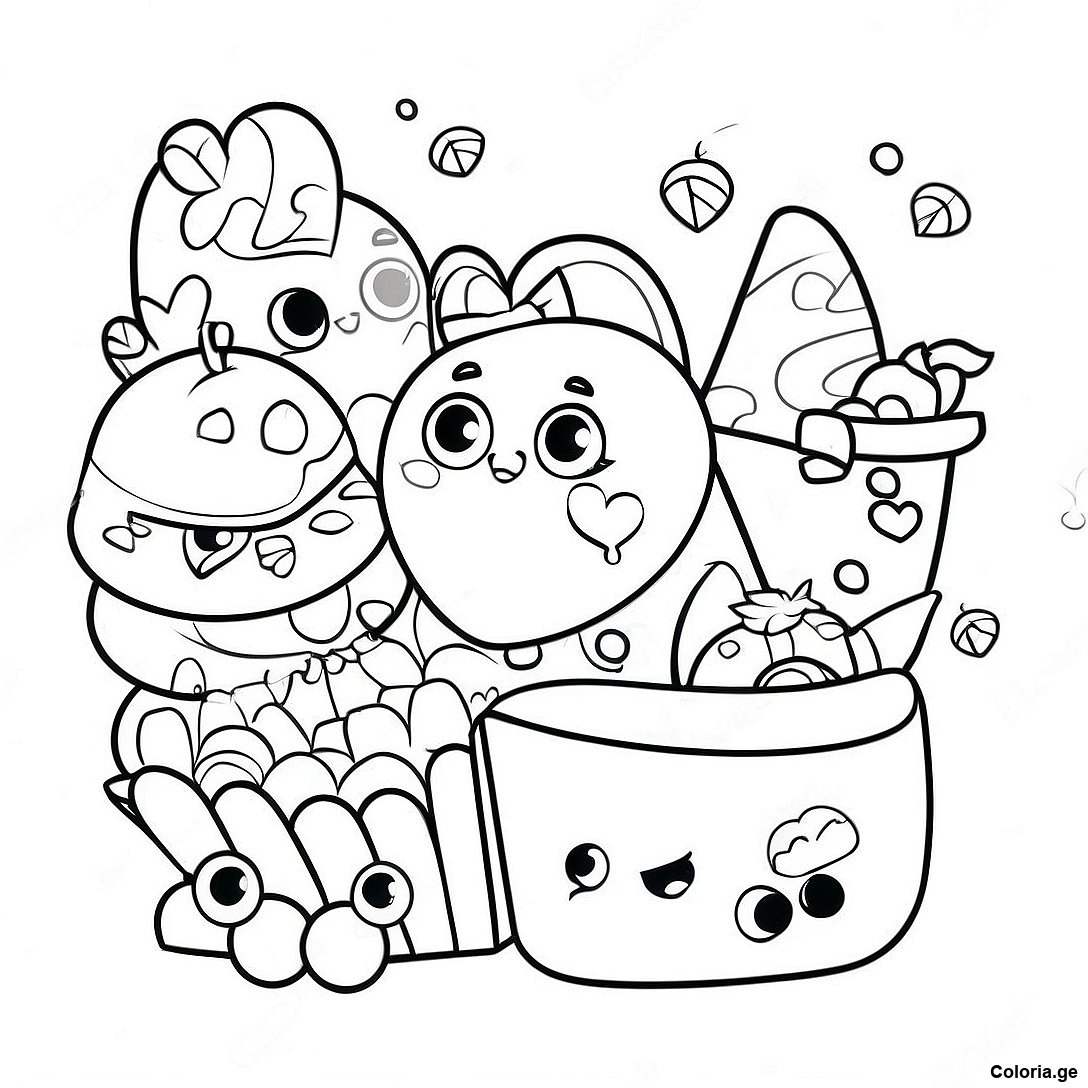 Page À Colorier Des Shopkins Colorés En Pleine Séance De Shopping