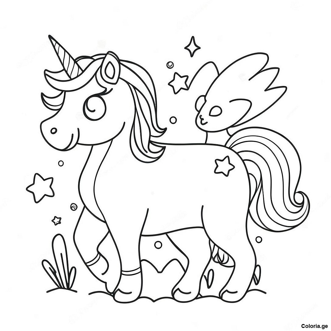 Page de coloriage d'alicorne mignonne avec une crinière étincelante