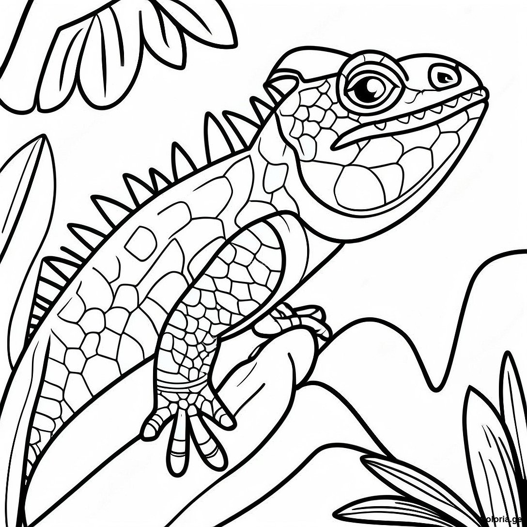 Télécharger le PDF imprimable de Page À Colorier Iguane Coloré Dans Une Jungle