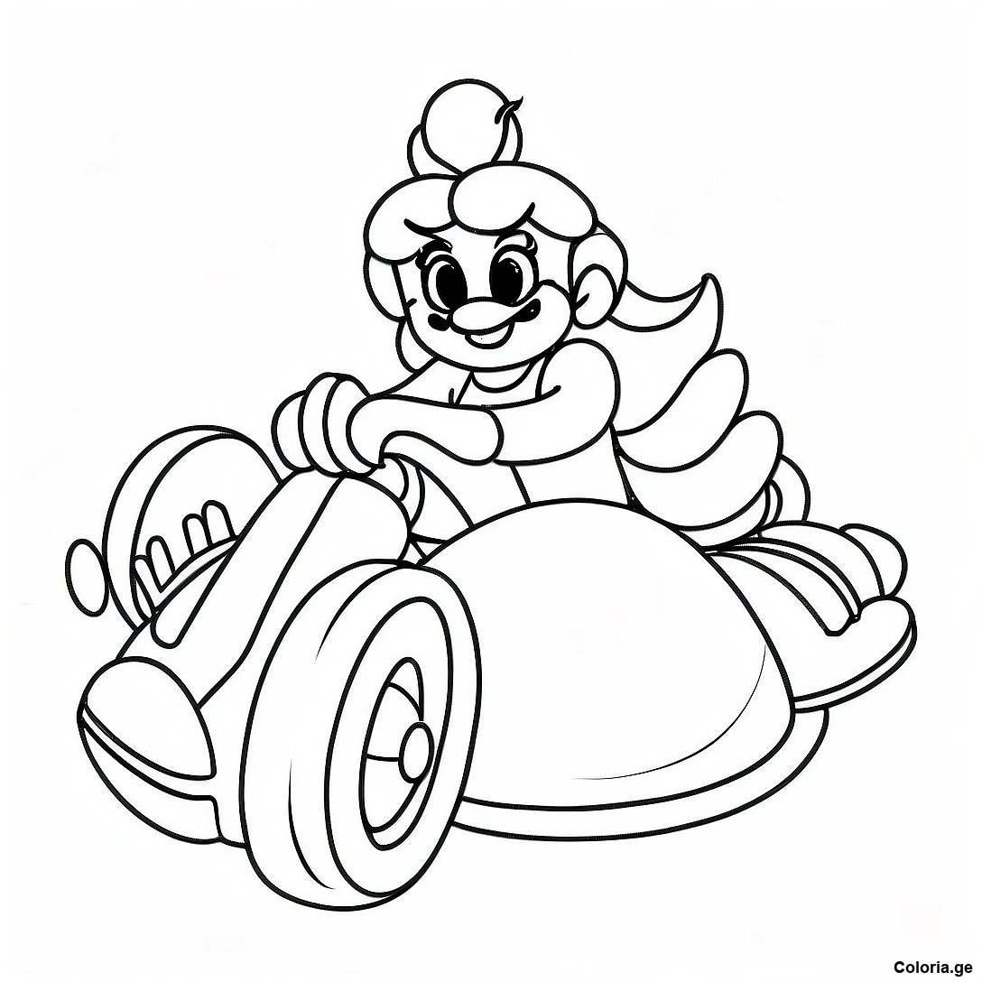 Télécharger le PDF imprimable de Page À Colorier Mario Kart Princesse Peach En Course