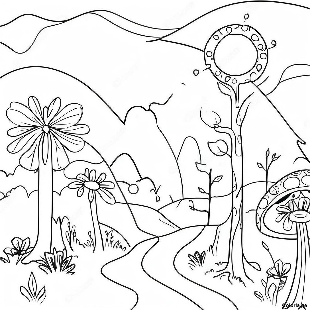 Télécharger le PDF imprimable de Page De Coloriage Adulte De Paysage Fantastique Fantaisiste