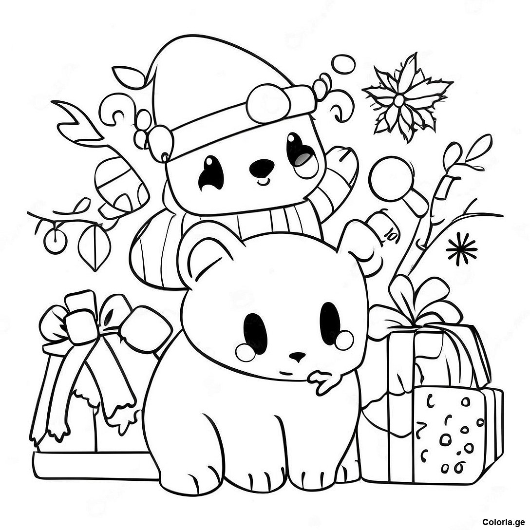 Télécharger le PDF imprimable de Page De Coloriage Animaux Festifs D'hiver