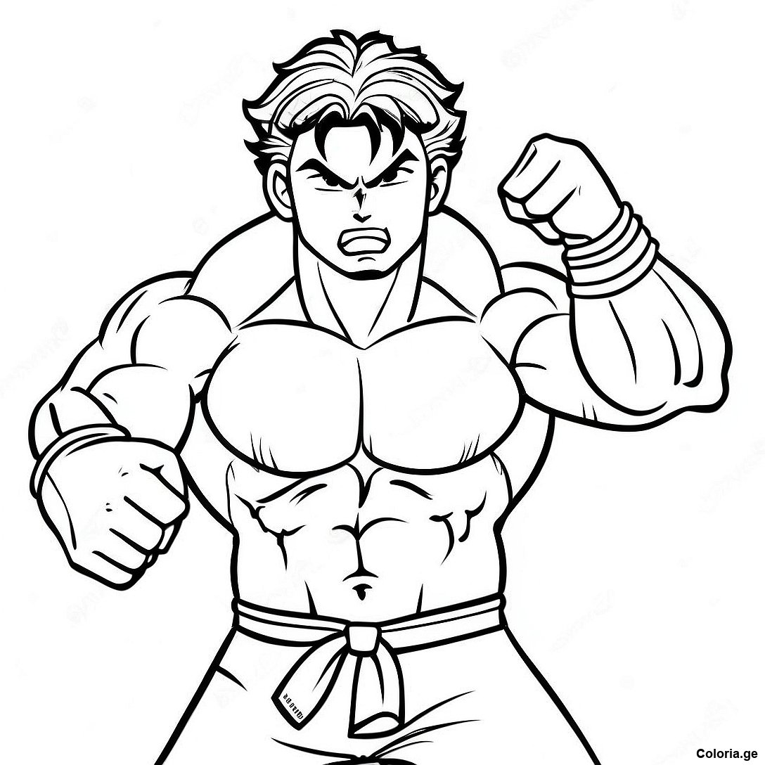 Télécharger le PDF imprimable de Page De Coloriage Baki Se Battant Dans L'arène