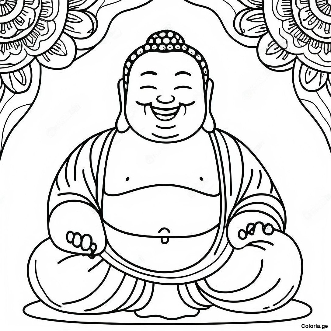 Page De Coloriage De Bouddha Heureux Avec Un Grand Sourire