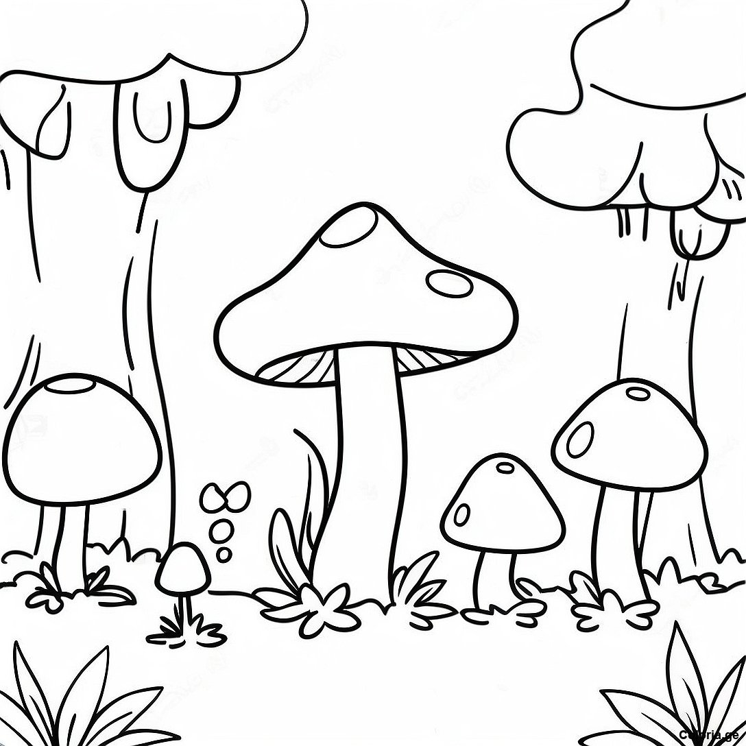 Télécharger le PDF imprimable de Page De Coloriage De Forêt De Champignons Fantaisistes