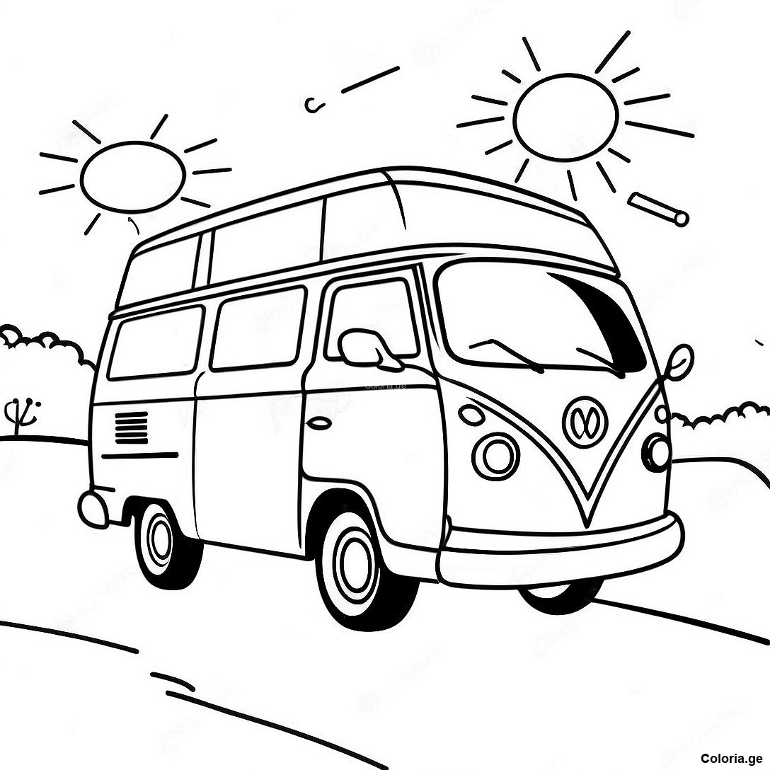 Page De Coloriage De Fourgon Coloré Sur Une Route