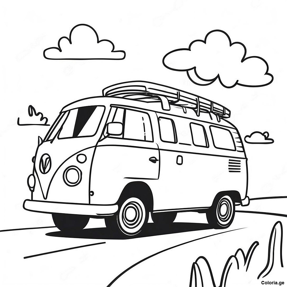 Page De Coloriage De Fourgon Coloré Sur Une Route