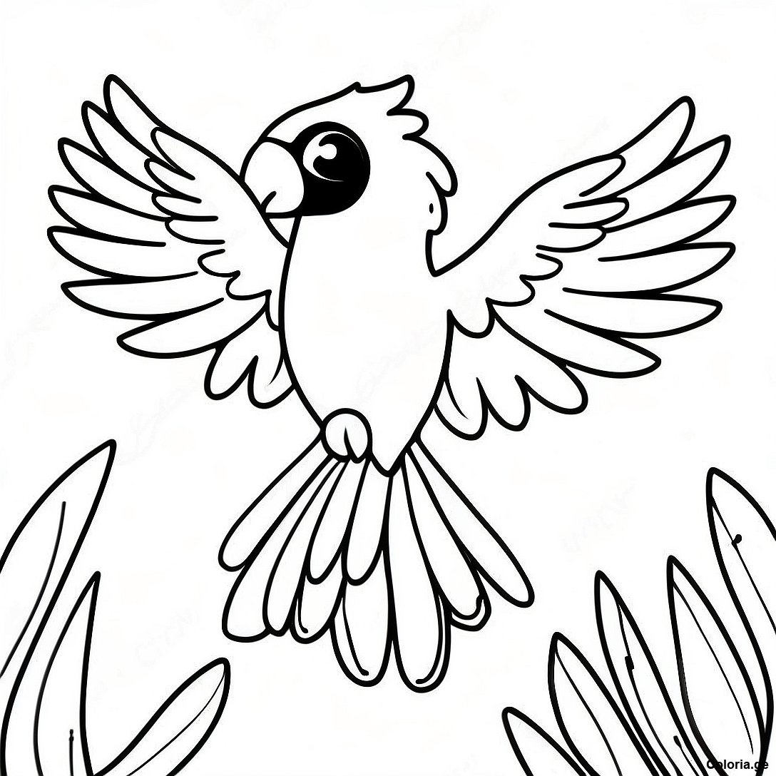Télécharger le PDF imprimable de Page De Coloriage De La Majestueuse Macaw Volant Haut