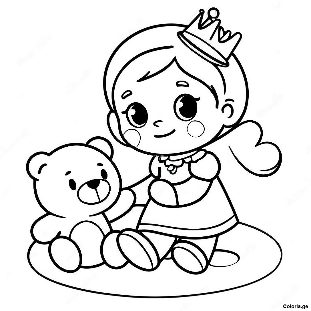 Page De Coloriage De La Petite Princesse Joueuse Avec Un Ours En Peluche