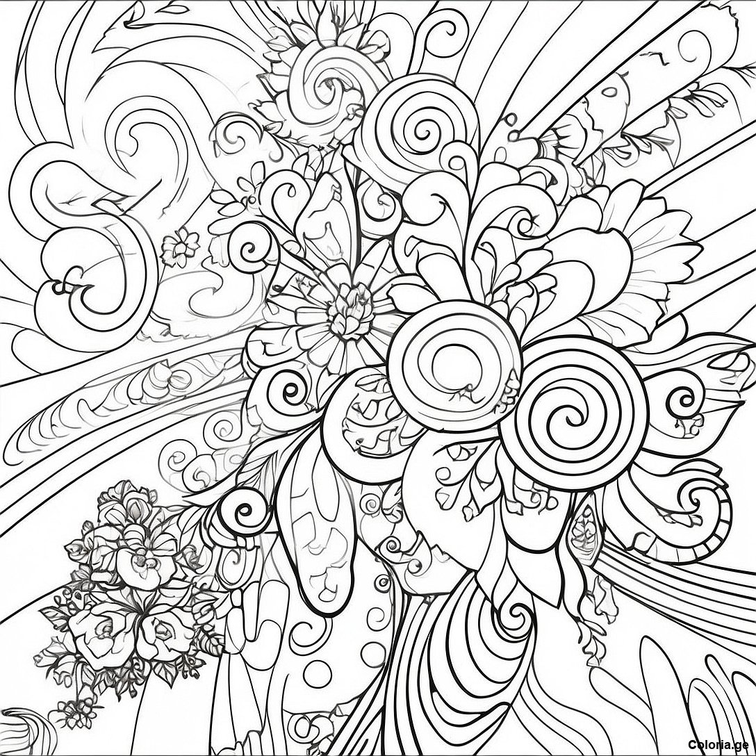 Page à colorier de fleurs de printemps et œufs de Pâques