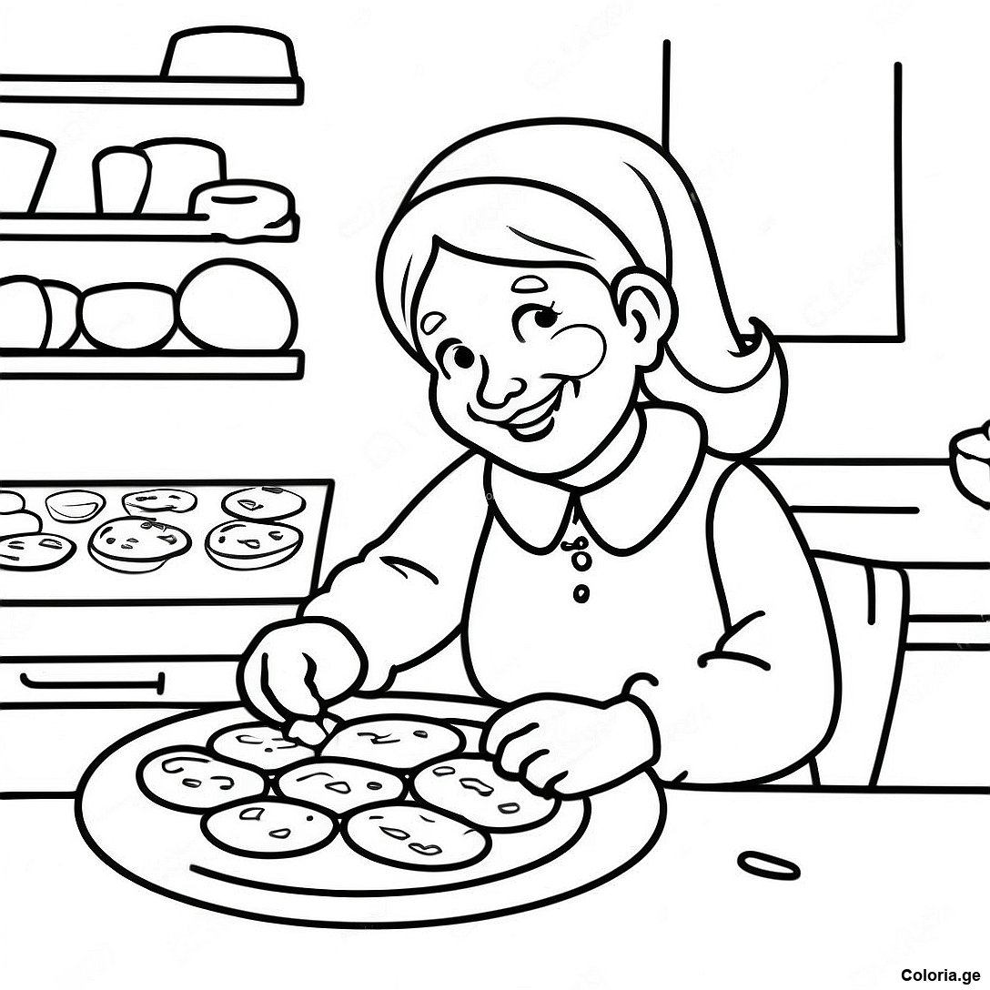 Page De Coloriage De Mme Claus En Train De Cuire Des Biscuits