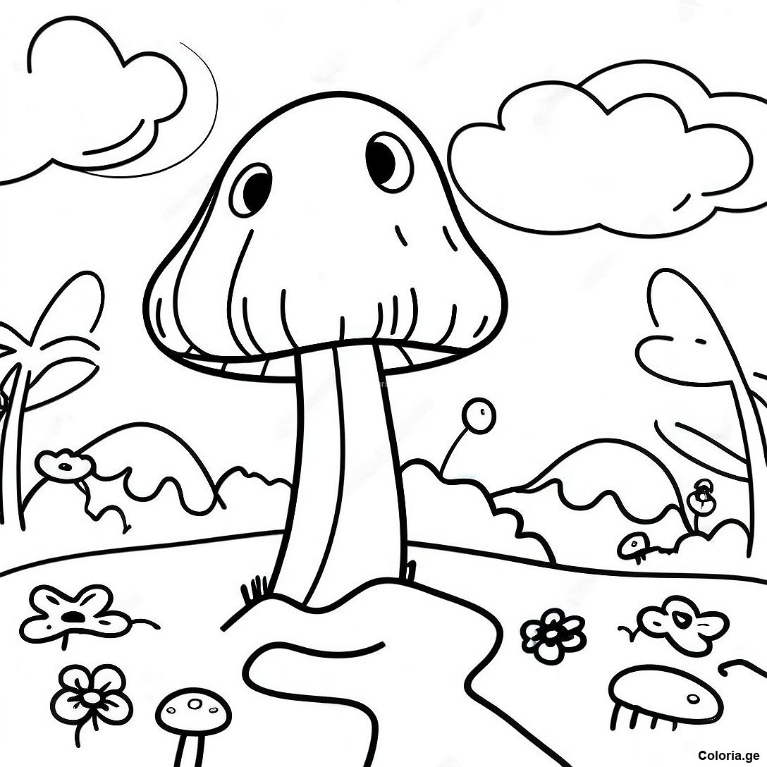 Télécharger le PDF imprimable de Page De Coloriage De Paysage De Champignons Groovy