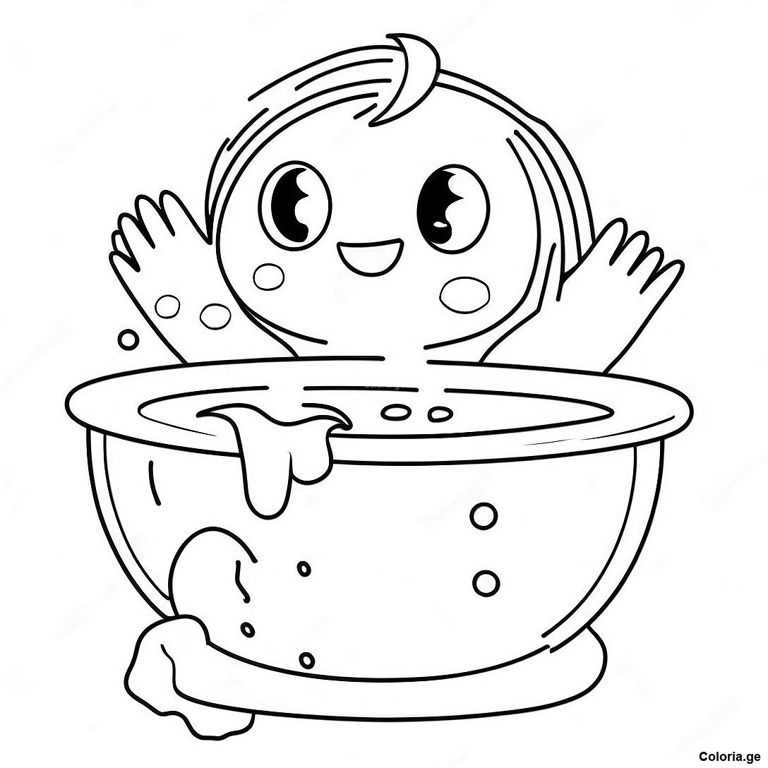 Télécharger le PDF imprimable de Page De Coloriage De Personnages Mignons Se Lavant Les Mains