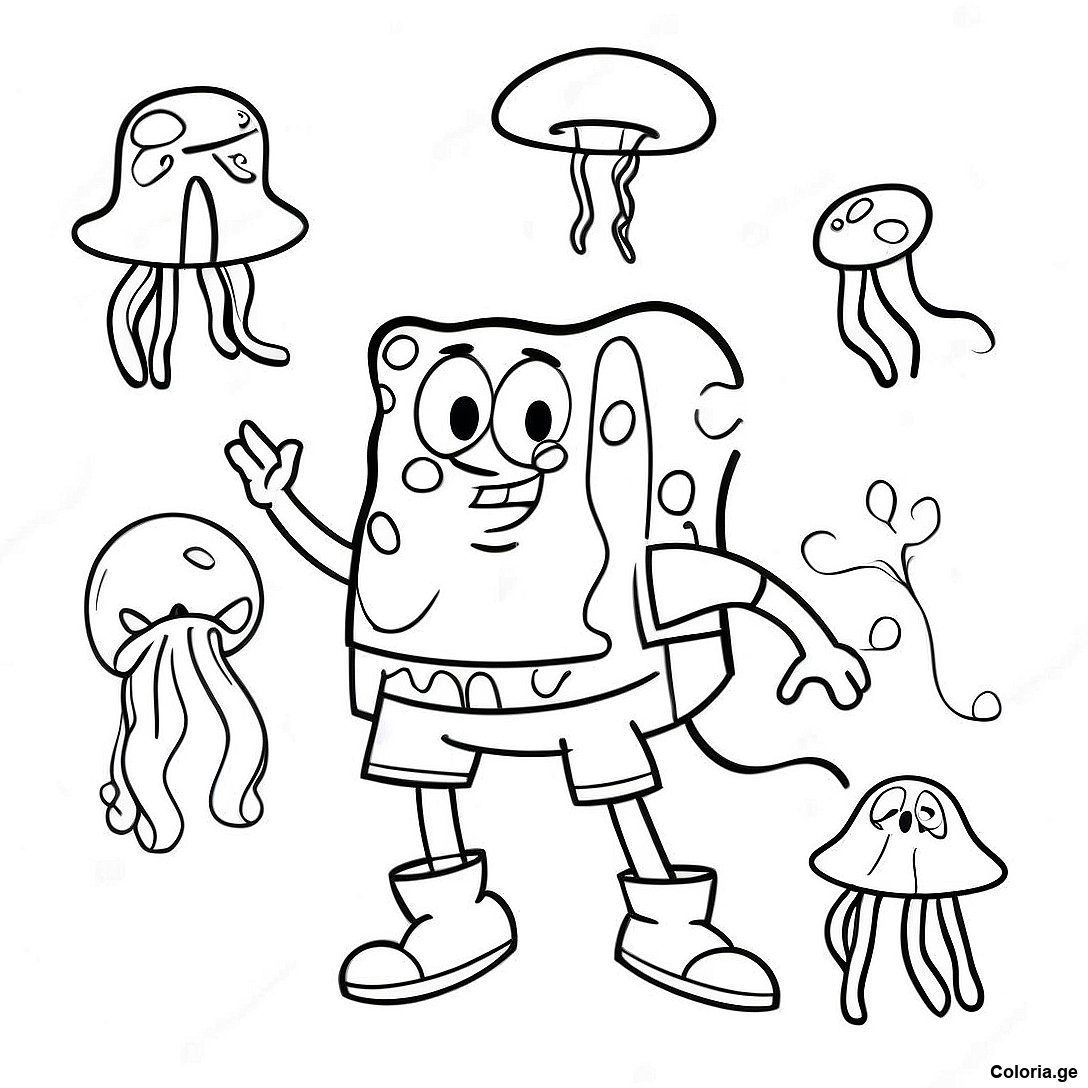 Page De Coloriage De Spongebob Avec Des Meduses 68592 15011