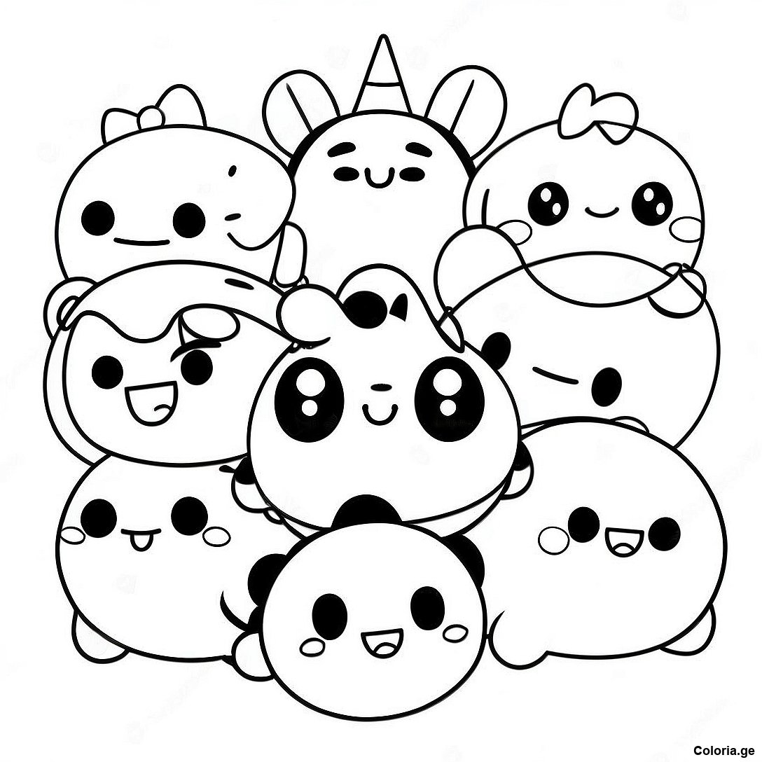 Télécharger le PDF imprimable de Page De Coloriage De Visages Tsum Tsum Heureux