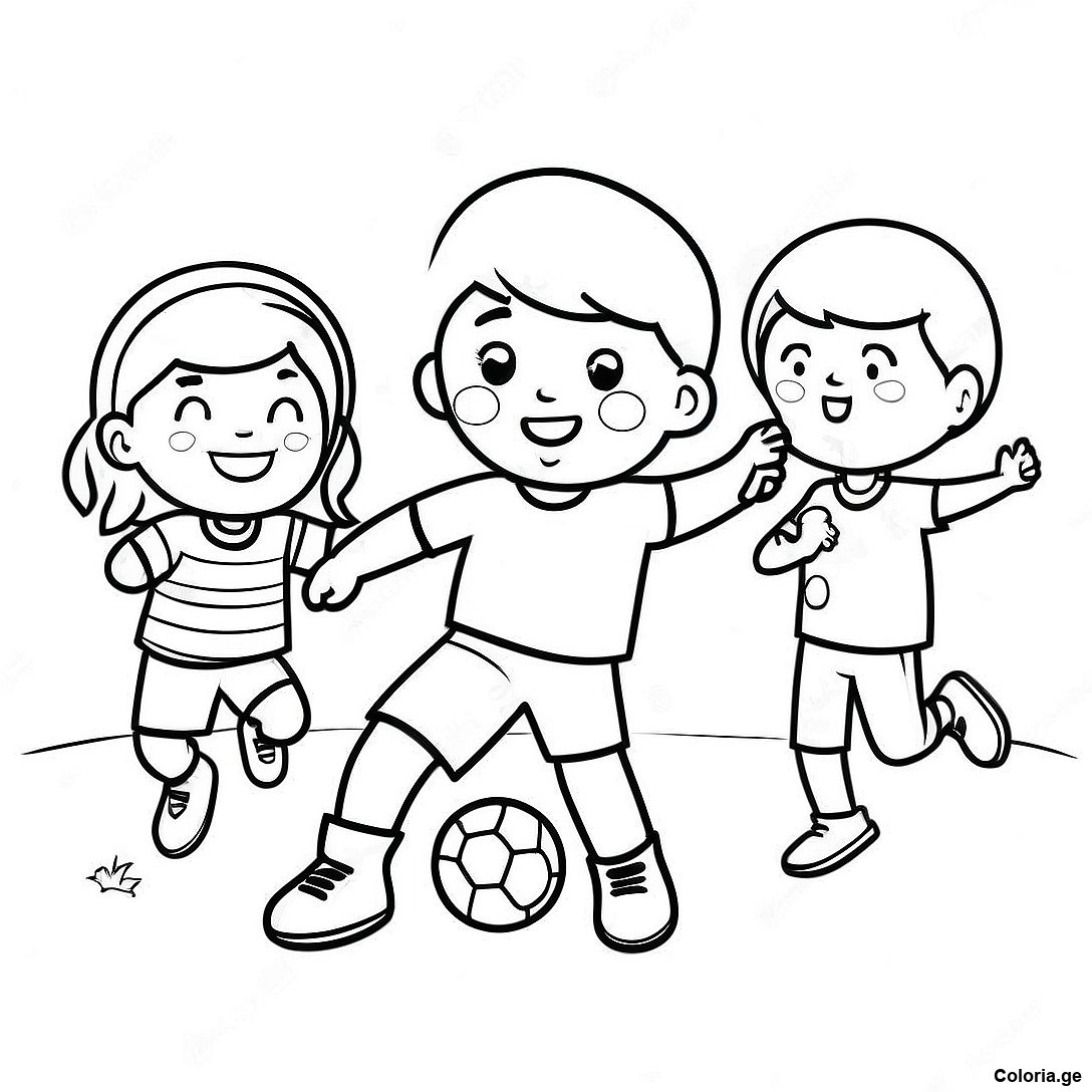 Page De Coloriage Denfants Joyeux Jouant Au Football 135416 67268