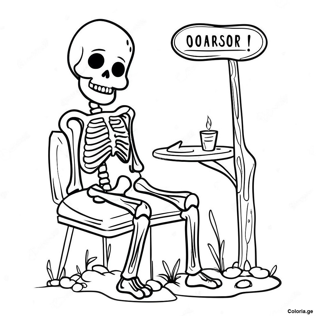 Télécharger le PDF imprimable de Page De Coloriage D'humour Noir Avec Un Squelette Sarcastique
